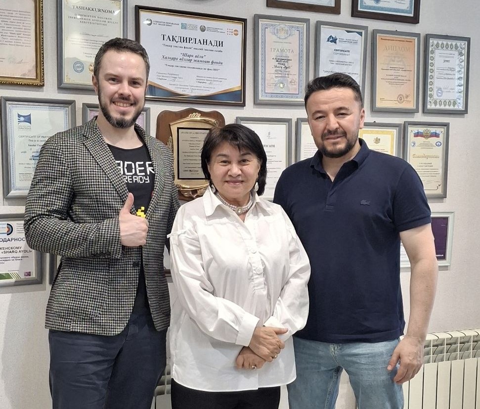 24 апреля 2026 года в офисе Международного женского общественного фонда SHARQ AYOLI состоялась рабочая встреча с участием председателя Ассоциации франчайзинга Узбекистана Мурата Азамова и международного эксперта по франчайзингу Виктора Ляшевского.